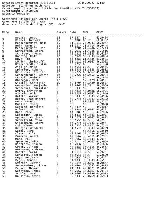 evtl. ab 4. Platz: 1 zusätzliches Boosterpack "Kampf um Zendikar" aus dem restlichen Booster-Preispool.